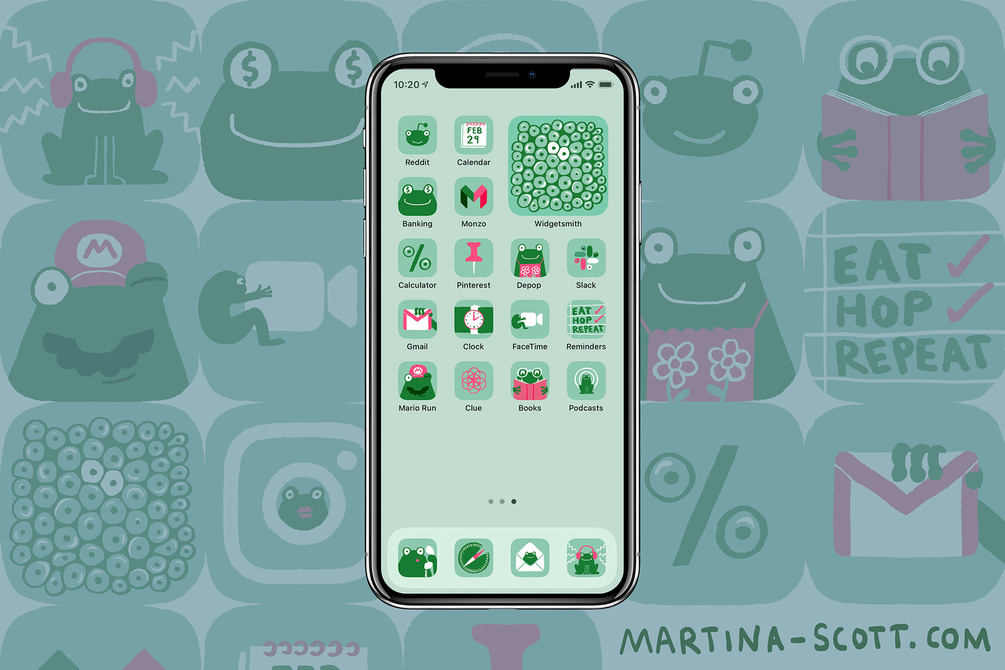 A beautiful collection of frog app icons made for iOS 14, which also work for android users!